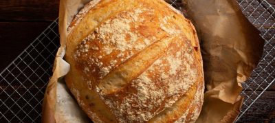 Após o descanso, abaixe a massa e molde-a em formato de pão. Coloque a massa em uma forma de pão previamente untada e deixe repousar por mais 30 minutos. Enquanto isso, pré-aqueça o forno a 180 graus Celsius. Asse o pão por aproximadamente 30 a 35 minutos ou até que a superfície esteja dourada e ao bater levemente na crosta, você ouviu um som oco.