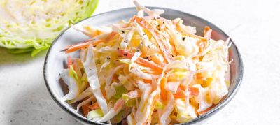- À parte, misture o alho picado, o suco de limão, o azeite de oliva, o sal e a pimenta-do-reino. Regue a salada com esse molho e misture bem para que os ingredientes fiquem bem temperados.