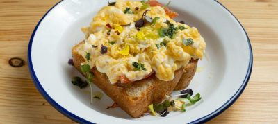Torrada com ovo mexido e cebolinha